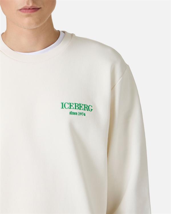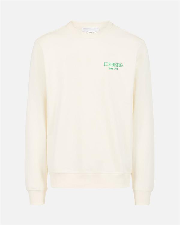 Sweatshirt met ronde hals en een klassieke normale pasvorm, gemaakt van zacht vanillekatoen. Het kledingstuk wordt gekenmerkt door het geborduurde institutionele Iceberg-logo in het midden vooraan, voor een onderscheidende en authentieke touch. Afgewerkt met een geribbelde kraag, manchetten en onderkant, is het een essentieel kledingstuk, gemakkelijk te matchen en perfect voor een casual maar verfijnde look.