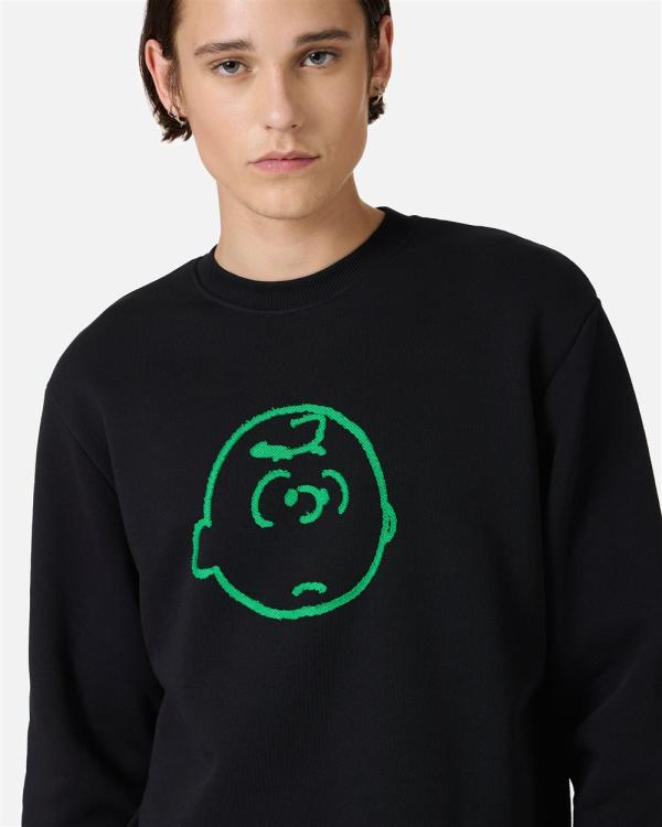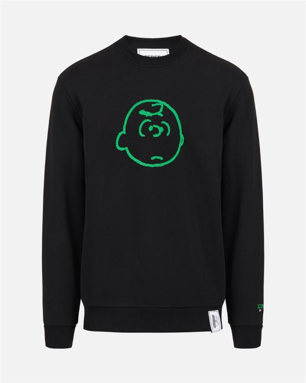 Droge lijnen en een speelse geest voor dit slanke sweatshirt met ronde hals in zwarte struikstof. Het Peanuts-borduurwerk op de voorkant voegt een pop en aanhankelijke noot toe, in evenwicht gebracht door de soberheid van het Iceberg-logo geborduurd op de linkermouw. Een kledingstuk dat comfort, ironie en visuele identiteit combineert.
