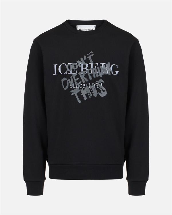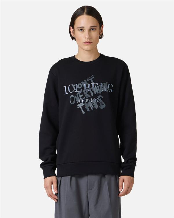Sweatshirt met ronde hals en een klassieke normale pasvorm, gemaakt van zacht zwart katoen. Het kledingstuk wordt gekenmerkt door het geborduurde institutionele Iceberg-logo in het midden voor, voor een onderscheidende en authentieke touch. Afgewerkt met een geribbelde kraag, manchetten en onderkant, is het een essentieel kledingstuk, gemakkelijk te matchen en perfect voor een casual maar verfijnde look.