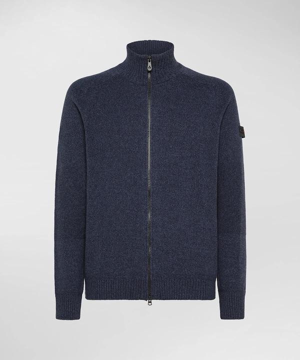 Vest Peuterey Donkerblauw met opstaande kraag en ritssluiting in model ‘BADHAMS’. Het vest is gemaakt van 80% wol en 20% polyamide. Het bekende logo van Peuterey zit op de linkermouw. Het model is regular fit.